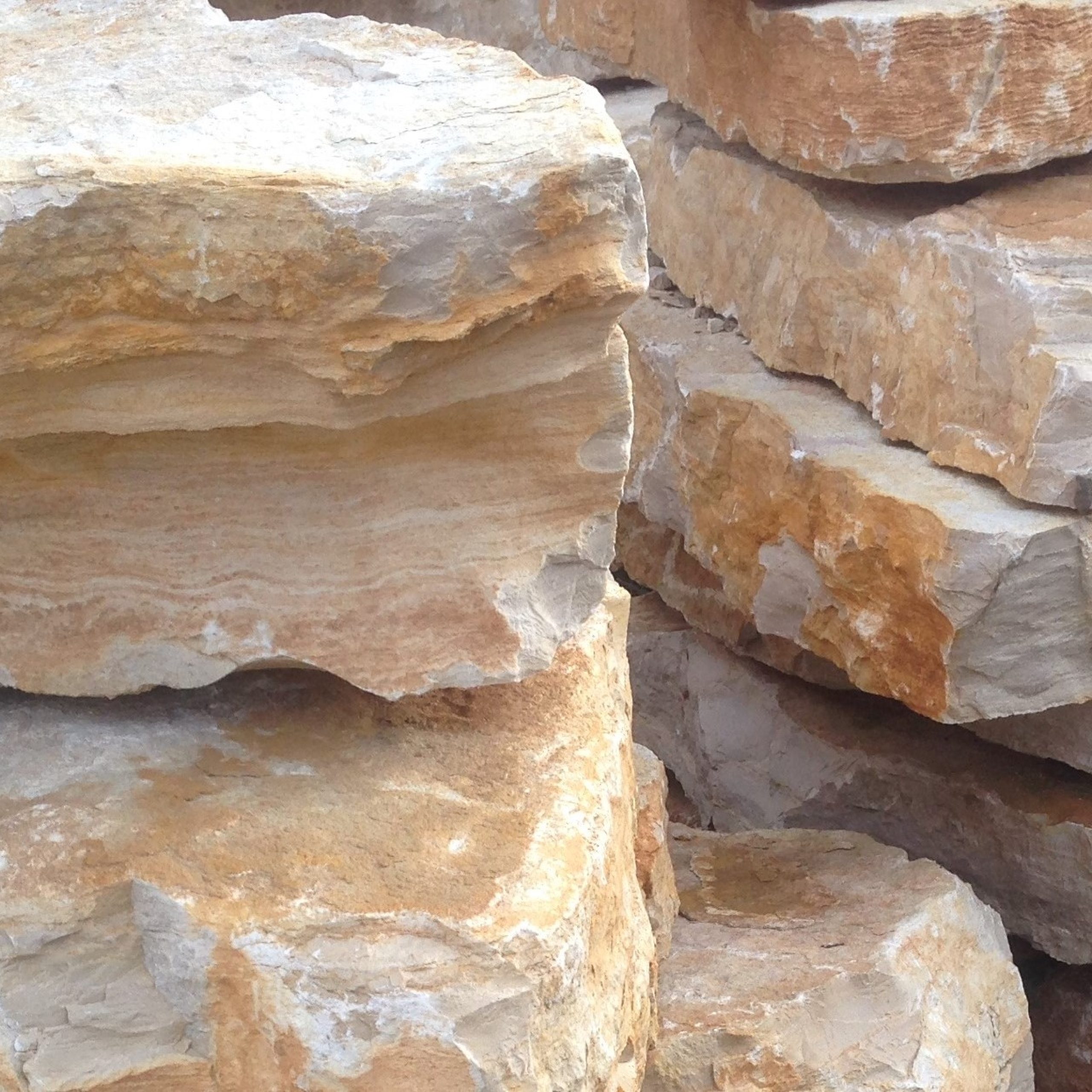 Lastroni giganti in pietra di Trani da camminamento, spessore 12-15 cm, disponibili nei colori bianco e giallo tipico.