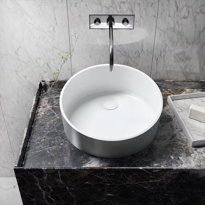 - Lavabi Bianchi in Solid Surface, dalle forme sinuose e dinamiche ottenute mediante un’innovativa tecnica di produzione.