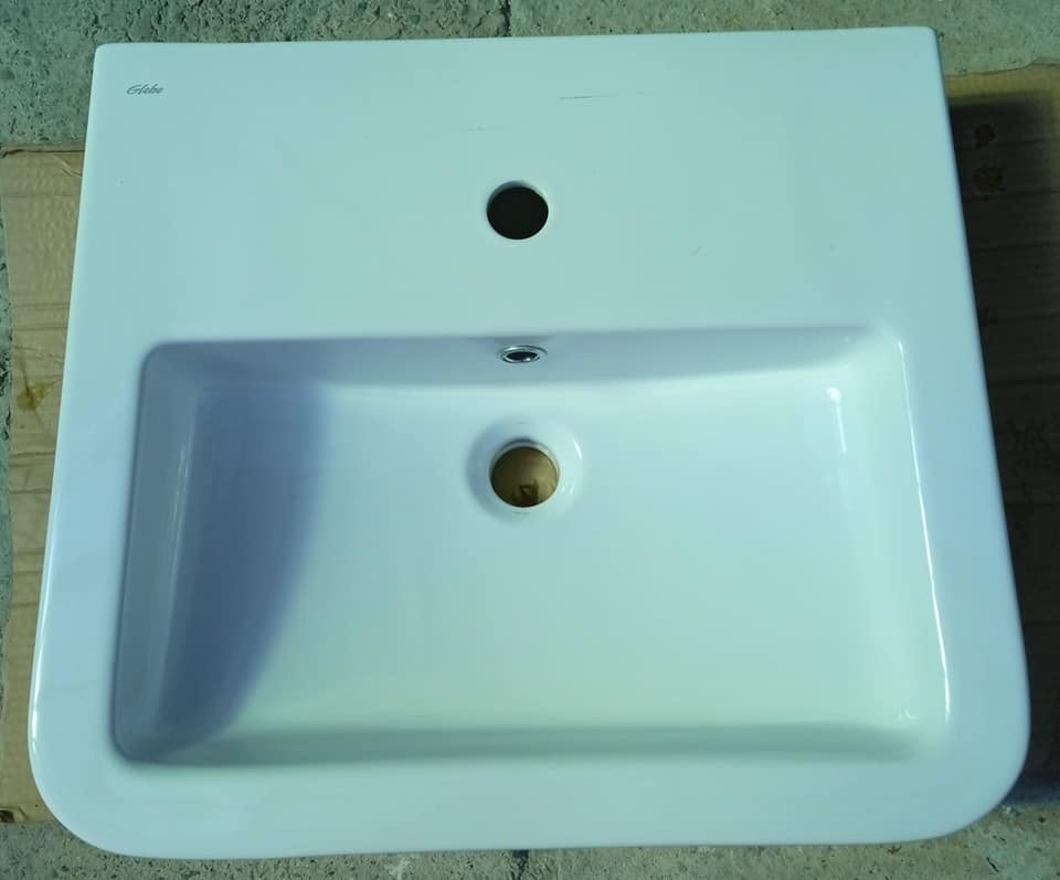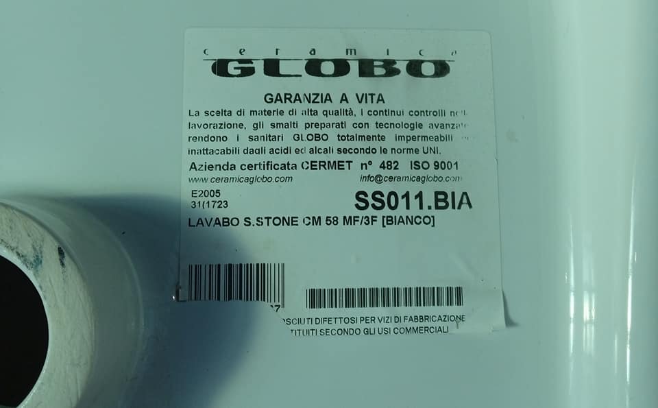 Lavabo s. Stone certificato a vita ceramica bianco Globo, cm 58x49.