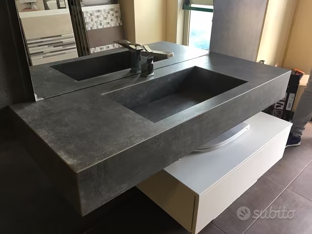 Lavabo in gres porcellanato su misura nel colore e nella finitura che preferisci. Interamente realizzato mediante l'incollaggio dei vari profili in gres porcellanato, con colle e stucchi epossidici. vasca raccolta acqua interamente in acciaio inox con collegamento diretto allo scarico. Piastra in gres porcellanato, amovibile per la pulizia. Realizzato su misura e dalla piastrella che si desidera. Perfetto per abbinare la stessa piastrella come rivestimento bagno o interno doccia. Prezzo variabile in base alle misure desiderate.