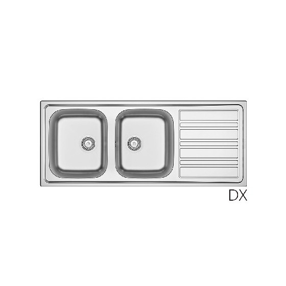 Lavello in acciaio lucido. Completo di sifone, ganci per fissaggio, guarnizione autoadesiva. Profondità vasche 200 mm. In acciaio Inox. Con foro per miscelatore. Spessore acciaio inox 0,7 mm.