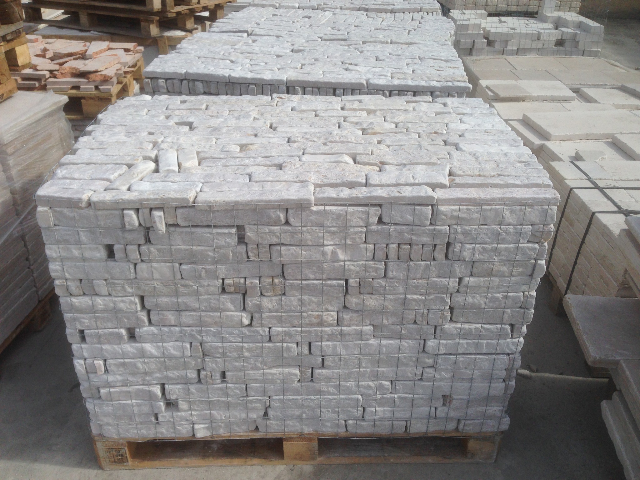 Listelli in marmo di Trani da rivestimento anticati tranciati rifilati, spessore 3 cm.