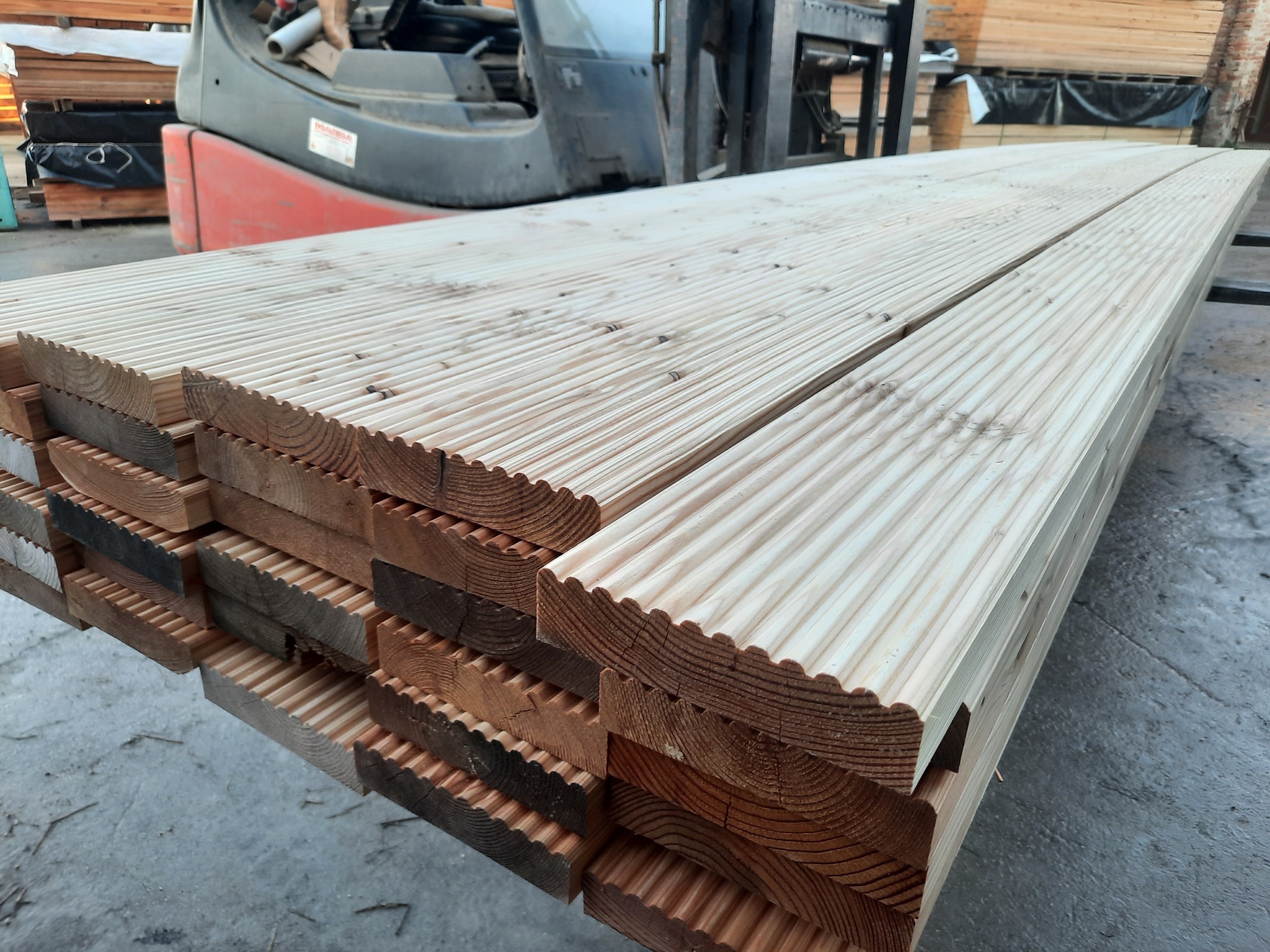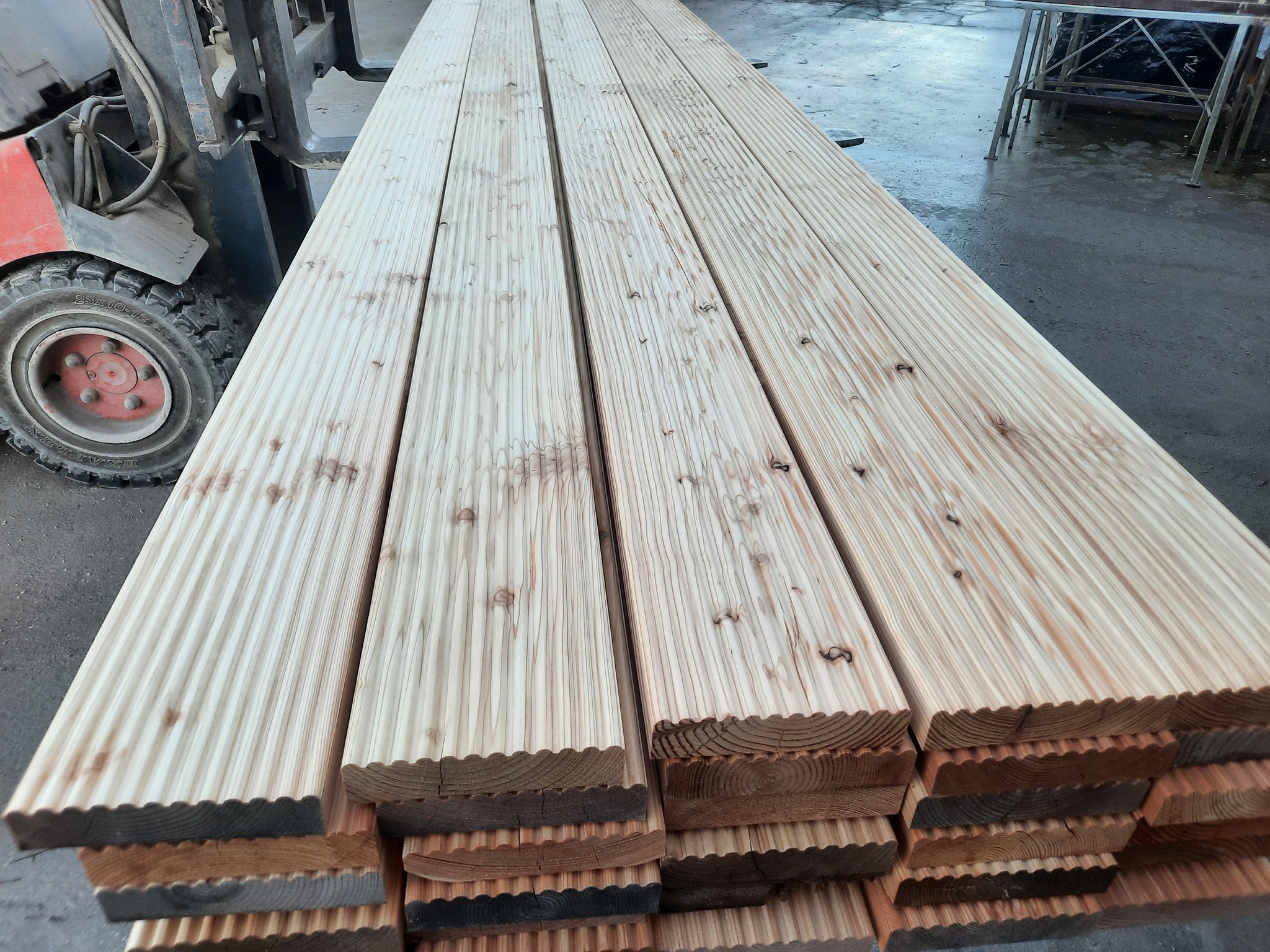 Listoni antiscivolo zegrinati in legno di Larice (Decking) spessore mm32x150x5000 ideali per pavimentazioni esterne rivestimenti piscine ecc.
