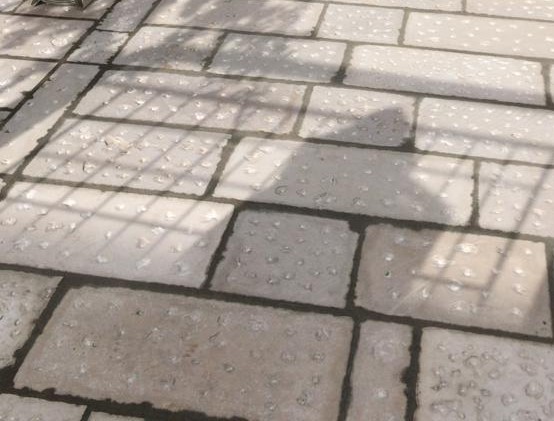 Marmette in pietra di Trani da pavimento esterno anticate e picconate, formato 30x3 cm a correre.