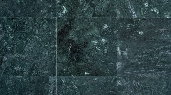 Marmo pregiato Verde Alpi, in formato quadrato. Lucidato, levigato e bisellato.