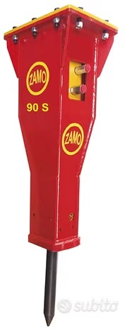 Martello Demolitore Zamo 90S, Peso 105 Kg, Pressurizzato e Silenziato applicabile a mini escavatori da 800 a 2.200 Kg, completo di n°2 utensili diam. 44 mm e attacco escavatore. Sella per l'escavatore con Attacco a perni saldata su contro piastra imbullonata al martello. Prodotto Completamente in Italia Completo di Manuale uso manutenzione e Certificazione CE Prodotto Fatturato e Garantito 12 mesi Spedizioni in tutta italia.
