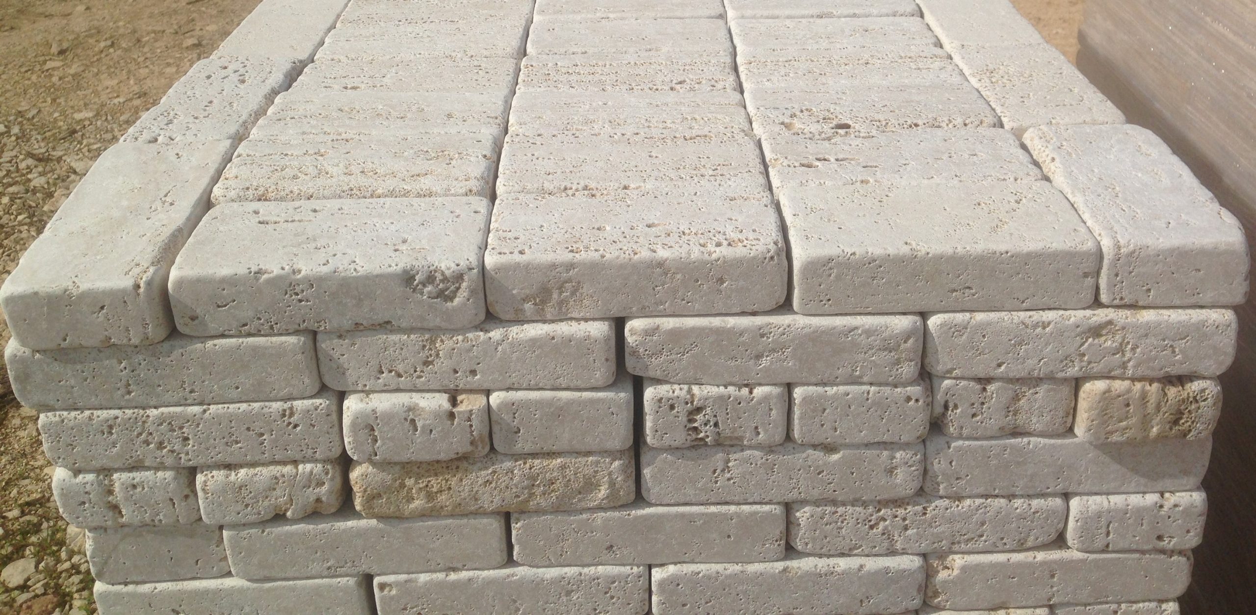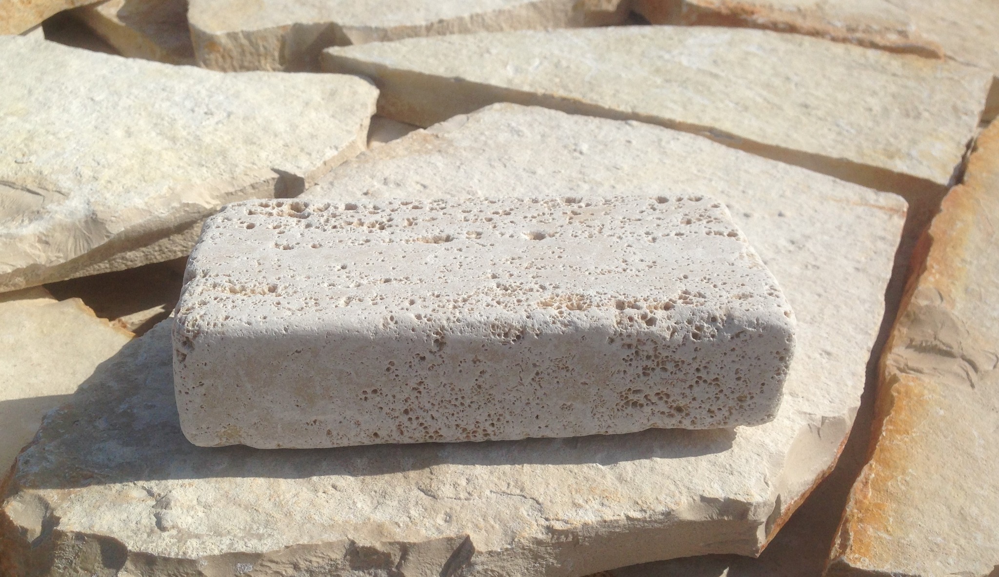 Mattoni di travertino Romano da pavimento anticati, formato 20x10x5 cm.
