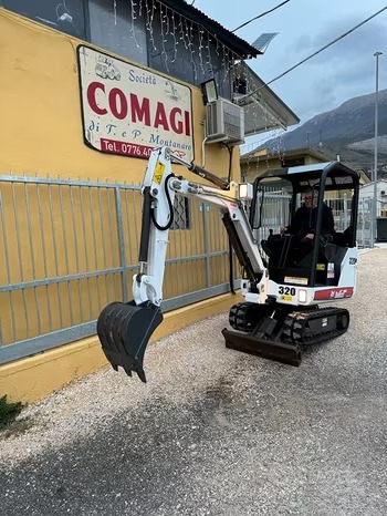 MINI ESCAVATORE BOBCAT 320 G ANNO 2005, ANNO 2005, peso Kg 1580, motore kubota 3 cilindri diesel, impianto martello, doppia velocità di traslazione, cingoli in gomma, tagliandata pronta per il lavoro. Completa di certificato ce + manuale uso e manutenzione. Per maggiori infromazioni telefonare allo 0776404669 COMAGI s.r.l.