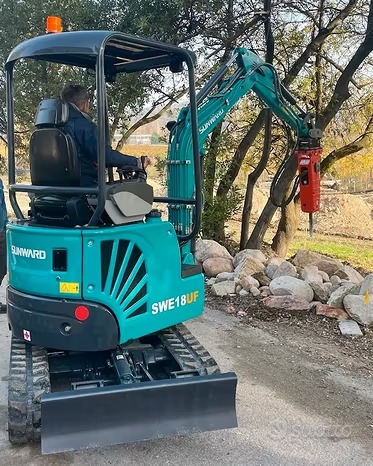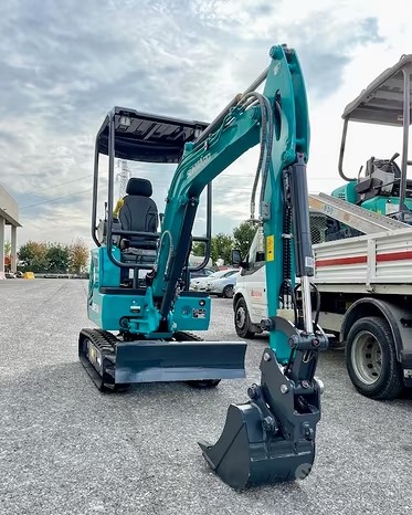 Miniescavatori da 18 Q.li macchine in pronta consegna. Ideale per imprese edili e di giardinaggio. Versione tettuccio 4 montanti Sedile confort ammortizzato Cinture di sicurezza Carro allargabile 990/1320 Lama anteriore Cingoli in gomma da 230mm Motore Yanmar 3TNV80 F-PSU da 13.4kW/2200 rpm Comandi a joystick Impianto martello doppio effetto Braccio lungo superstructure Valvola di blocco sul primario Kit luci su braccio fari led Doppia velocità di traslazione Kit 3 benne e attacco rapido meccanico 7 linee idrauliche Profondità di scavo 2.20 mm Cassetta attrezzi Catalogo ricambi CE macchina Disponibile in pronta consegna, possibilità prova. Possibilità di Leasing o finanziamento Per info chiedere di Stefano.