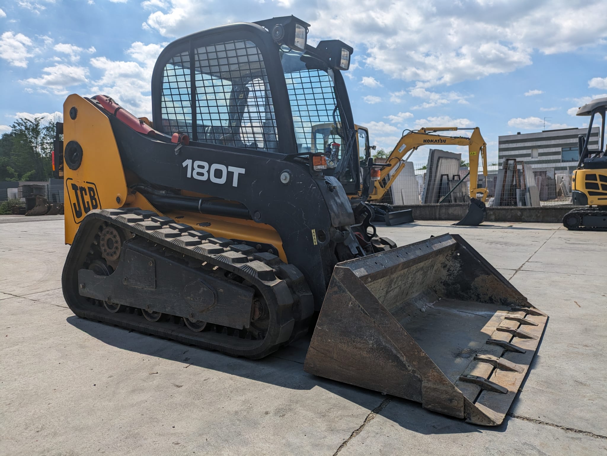 Minipala cingolata marca JCB tipo T180HF, anno 2008, ore 4970, cingoli nuovi, motore HP 60, impianto high flow, cabina chiusa con telecamera posteriore, benna carico, forche pallet, CE, targa e libretto circolazione stradale. Ottimo stato generale.