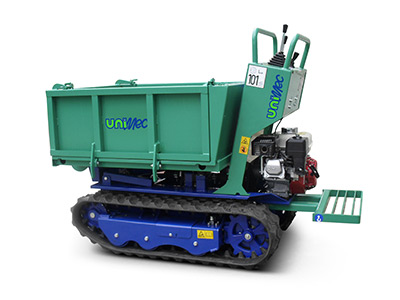 Minitransporter marca Unimec; disponibili diversi modelli e versioni, con cassone edile o agricolo, kg 1500,800,600,400 con carro fisso, cingoli allargabili e motore diesel o benzina, con o senza pedana per operatore...