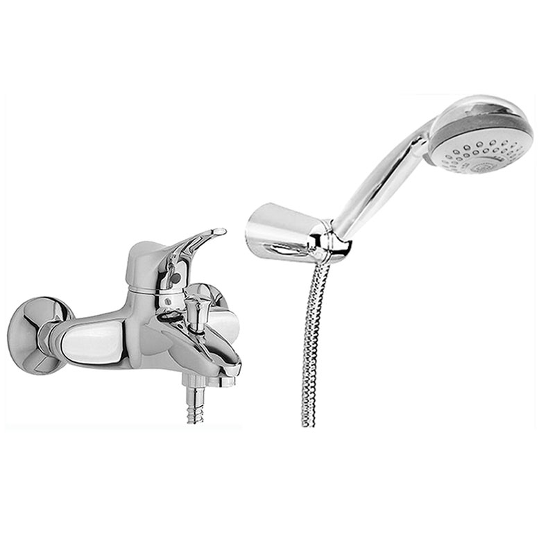 Miscelatore monocomando vasca completo ,supporto doccetta snodato murale ,doccetta Teti 3 getti in ABS ,flex Ottone 150 cm.