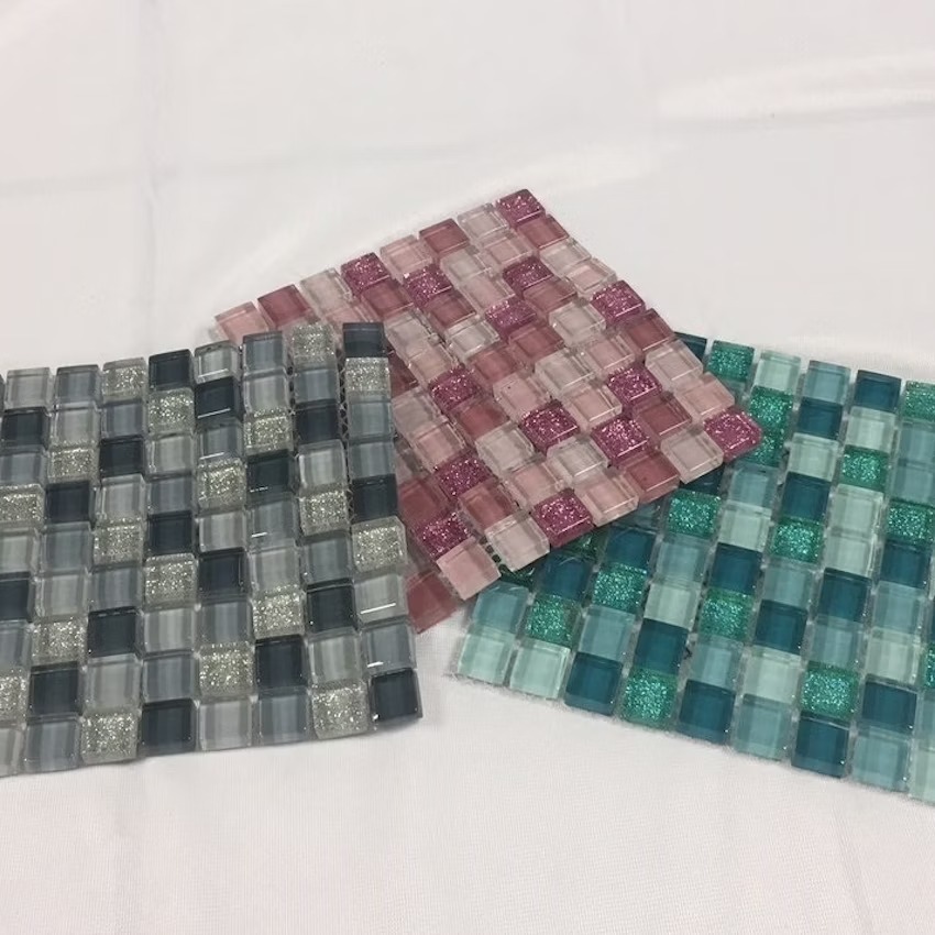 - Mosaici Glitter spessore 9 mm in vetro su rete.