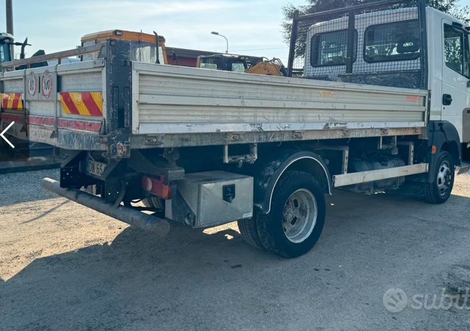Autocarro Nissan Atleon 56-15 allestito con cassone ribaltabile trilaterale in discrete condizioni generali Motore 3.0 turbo diesel 150 cv Cambio MANUALE Aria condizionata clima Chaive con chiusura centralizzata 3 POSTI Anno di immatricolazione 08/2009 150.000 km percorsi Portata UTILE 2400 kg Massa A PIENO CARICO 5600 kg Passo interasse 2800 mm Misure interne cassone: - Lunghezza 3650 mm - Larghezza 2010 mm - Altezza sponde d'alluminio 400 mm Gommato 80% Meccanicamente in ordine, per ulteriori informazioni chiamare.