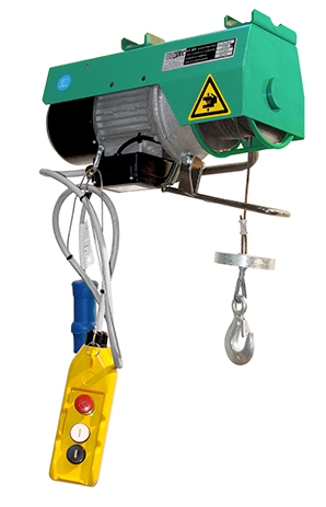 Portata 150kg, lunghezza della fune 25mt, 415x210x310mm, peso 22kg, diametro filo elementare 0,27 mm, tensione 230/230-400V, monofase, con attacco a bandiera.