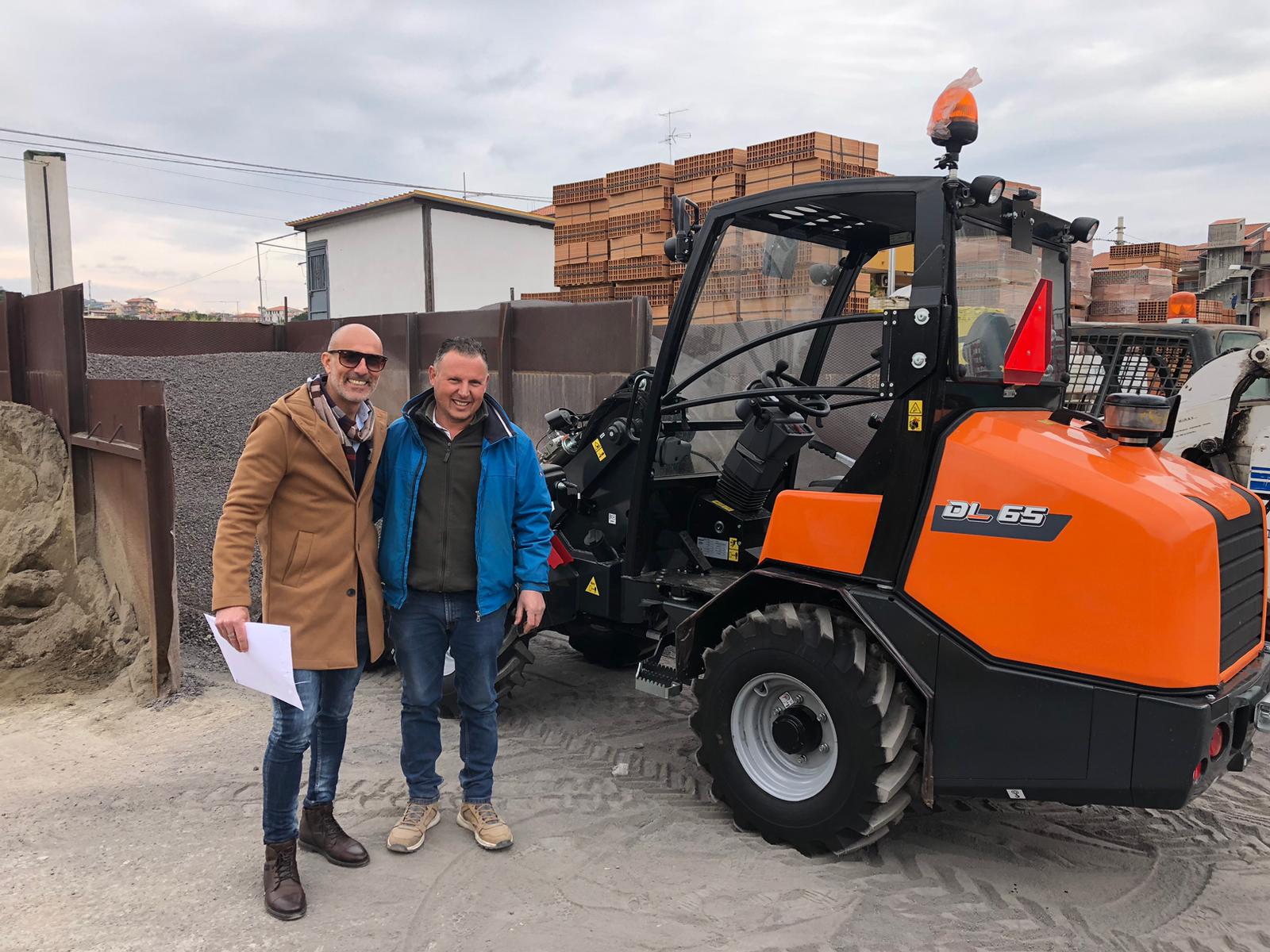 Pala gommata ideale per depositi di materiale edile,pala e forche con portata di 2000 kg. Benna da mezzo metro cubo.