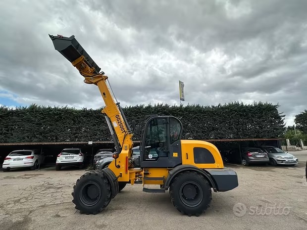 PALA CARICATRICE GG2500 TELESCOPICA CAPACITÀ BENNA (CBM) 1.0 CARICO NOMINALE (KG) 2500 ALTEZZA DI SOLLEVAMENTO 4500mm CAPACITÀ BENNA IN SOLLEVAMENTO MAX 800-1000KG PESO TOTALE (KG) 5500 LUCE DI SCARICO (MM) 2850 VELOCITÀ NOMINALE (G/MIN) 2400 PASSO (MM) 1550 BATTISTRADA (MM) 2550 L x P x A (MM) 6270X2100X2580 PNEUMATICO STANDARD 16/70-20 MAX. VELOCITÀ DI GUIDA (KM/H) 20-30 Specifica Tecnica Retrocamera Modello: GG2500T Peso macchina: 5500 kg Motore: Kunming Yunney Power Euro 5 Potenza motore: 75 CV Velocità nominale: 2400 giri/min Pressione idraulica: 16Mpa Flusso dell'olio idraulico: 90 l/min CAMPO DI FUNZIONAMENTO CAPACITÀ DELLA BENNA (CBM) 1,0 Peso massimo di sollevamento con telescopio chiuso: 2500 kg Peso massimo sollevabile con il telescopio aperto: 800-1000 kg MASSIMO VELOCITÀ DI GUIDA (KM/H) 20-30 DIMENSIONI PRINCIPALI Lunghezza: 6270 mm Larghezza: 2100 mm Altezza: 2580 mm.