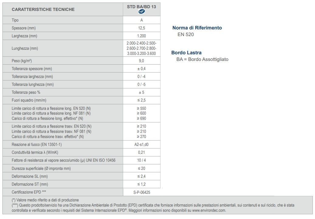 - Lastra Gypsotech STD base per normale utilizzo ( Tipo A secondo EN 520 ).