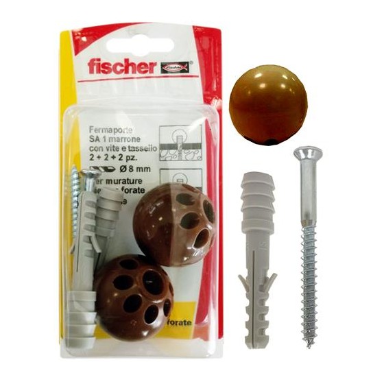 Blister con 2 x fissaggio S 8 T S, 2 x vit e 5,5 x 65 testa svasata con calotta + 2 x sfera marrone