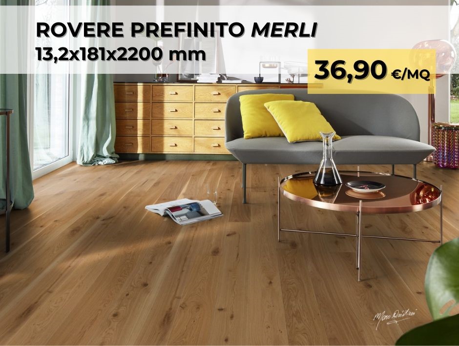 Parquet in rovere prodotto e lavorato in Europa, multistrato, prefinito, con incastro a click 5G per posa incollata o flottante. Garanzia del produttore Boen Bauwerk di 25 anni.