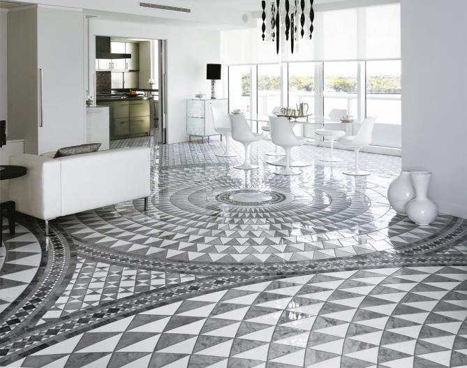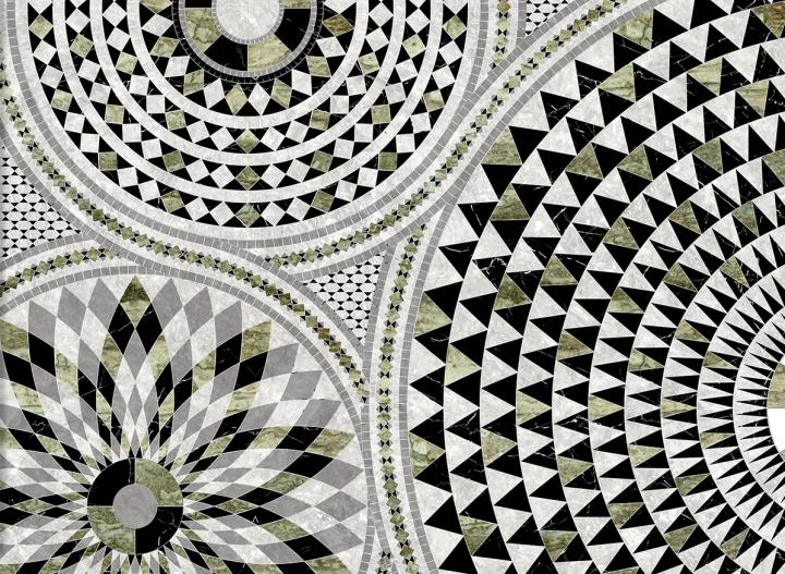 Arte e memoria percorrono la superficie levigata dal tempo, posano passi leggeri su tappeti di marmo e indugiano in un gioco intrigante di forme e colori alla ricerca di armonie eterne. Marmi e pietre naturali, elementi prevalentemente geometrici, variabili per colore, forma, dimensione.