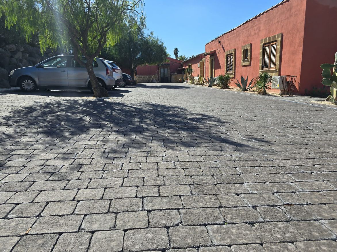 Disponibilità di pavimentazione autobloccanti esterna vari colori, varie tipologie di colore e trattamento. Con superficie retta, ondulata e spigolo vivo. Anticata.