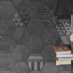 Pavimento e rivestimento in gres esagonale serie Bibulca Black 20x17,5 cm