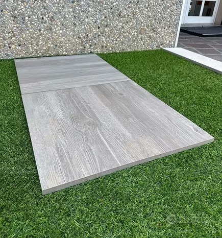Pavimento in gres porcellanato galleggiante, effetto legno 60x60 cm, HDV 209 by Ceramica Del Conca. Prodotto MADE IN ITALY, scelta commerciale. Presenza di qualche piccolo difetto, ma se posato con attenzione garantiscono un risultato uguale alla 1° scelta. Spessore 2 cm da posare galleggiante, oppure erba, sabbia o ghiaino. Può essere anche incollato come una normale piastrella da esterno. Adatto per locale pubblico e privato, da esterno, data la superfice ruvida R11.