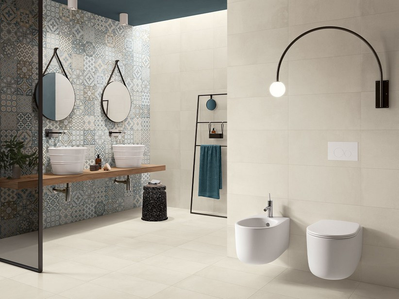 PAVIMENTO IN GRES PORCELLANATO EFFETTO CEMENTO REVOLUTION BIANCO INTERNO