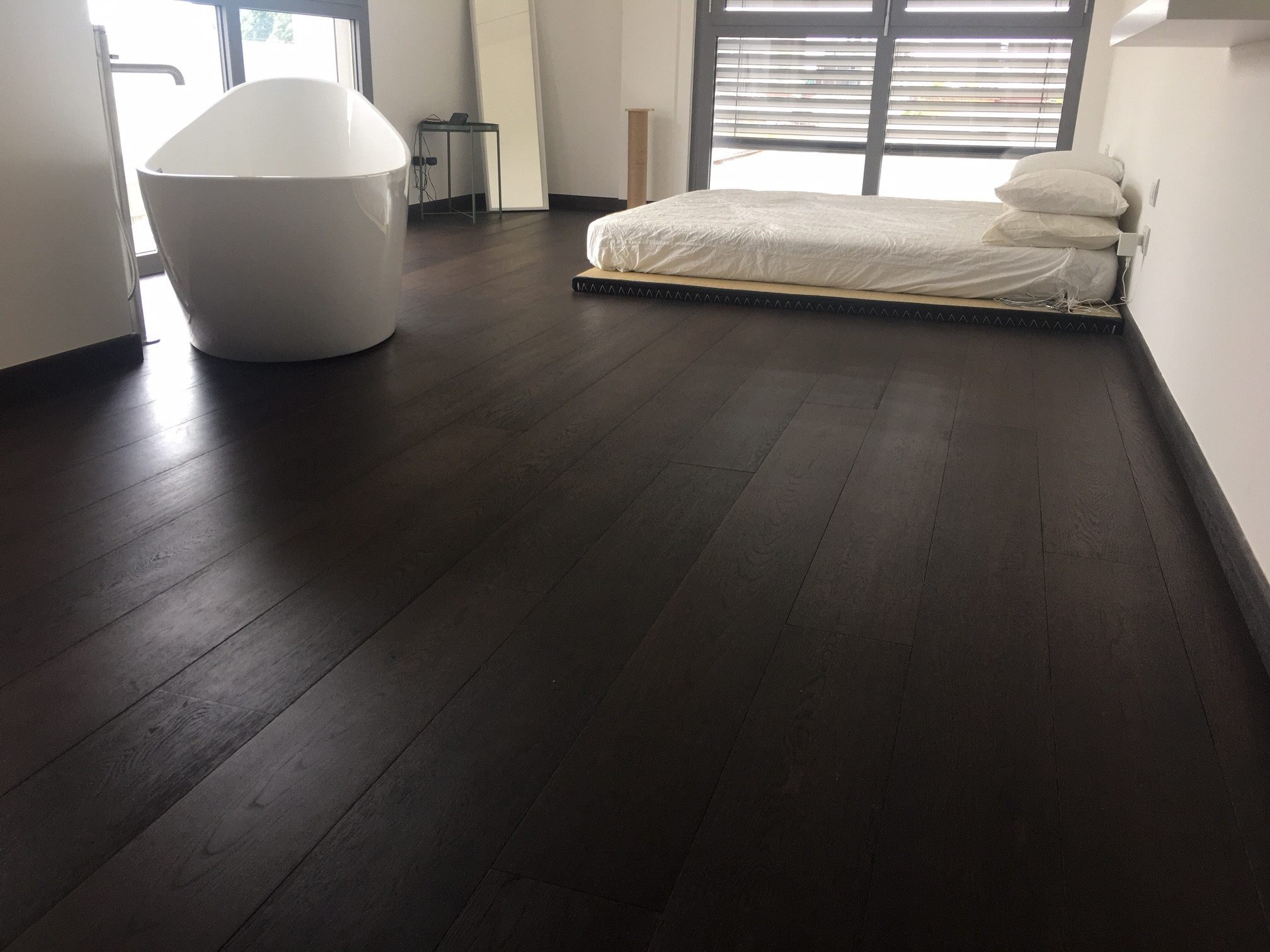 il formato piccolo va posato sempre incollato, per il grande è possibile la posa galleggiante.