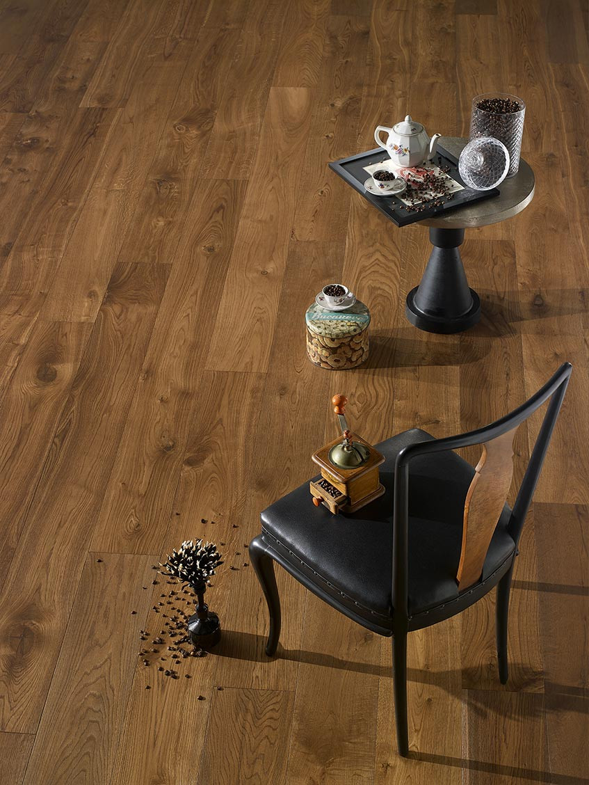 Pavimento in rovere naturale spazzolato verniciato UV.