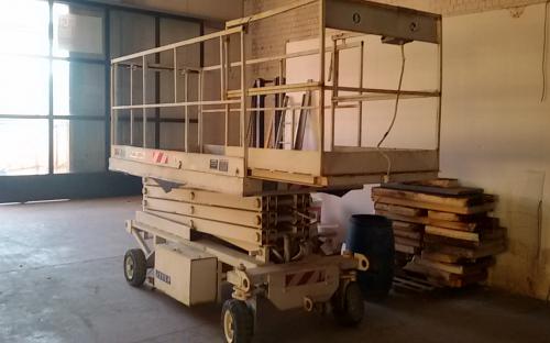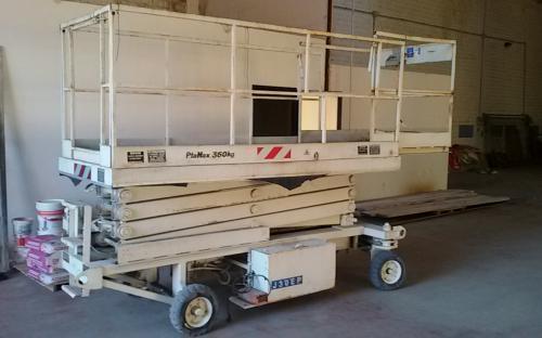 Piattaforma verticale su due ruote.. Con calpestio estensibile . Altezza max di lavoro 9,30 metri. Carico utile Kg 360.