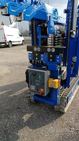 Piattaforma aerea cingolata EASY LIFT R180 Altezza massima di lavoro: 17.60 m, Sbraccio massimo di lavoro (120 kg): 8.50 m, Rotazione torretta: 320°, Cestello in alluminio 1100x700x1100 h mm con portata 200 Kg (2 operatori), Motore benzina: Honda 9.6 kW, Pendenza superabile in traslazione: 30%, Peso totale piattaforma: 2200 kg, Ingombro stabilizzatori a terra: 3100x3100 mm, Ingombri macchina a riposo: lunghezza 5480 mm - larghezza 890 mm - altezza 1950 mm, Comandi idraulici e proporzionali, Valvole di blocco sui cilindri, Segnale acustico durante la traslazione, Comando di avviamento/spegnimento motore dal cestello, Pompa a mano per discesa di emergenza, Agganci per cinture di sicurezza sul cestello, Limitatore di sbraccio, Cingoli in gomma, Motore elettrico 220 V, Contaore, Presa aria/acqua, Presa elettrica 220 V, Verniciatura standard, Certificazione CE, Manuale uso e manutenzione, altre info e schede tecniche sul sito.