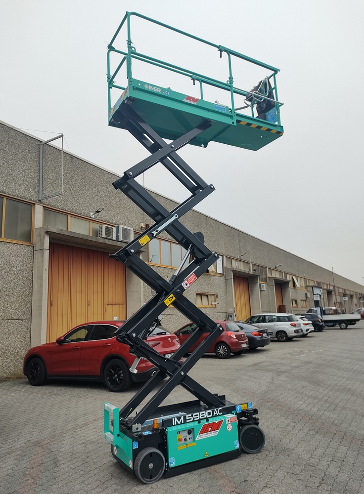Piattaforma aerea semovente elettrica Imer IM5980AC, omologata interno/esterno, in PRONTA CONSEGNA!