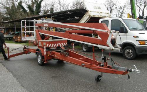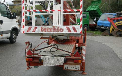 Ponte mobile TECCHIO montato su carrello omologato stradale. Altezza lavoro 12 metri. 220 W. Portata 2 persone più Kg 200 . Completa di libretto di circolazione e libretto Ispesl.