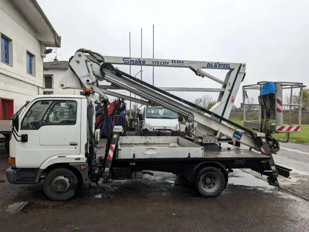 Piattaforma aerea usata mod. 17 smart, altezza di lavoro 17 metri, sbraccio 9 metri, rotazione navicella 90+90 completamente oleodinamica, stabilizzatori ad A , montata si Nissan Cabstar 35.11,Km 90884 il tutto anno 2000, motore elettrico 220 volt , collaudi Mctc e Ce regolari Verifica ventennale effettuata Condizioni ottimali.