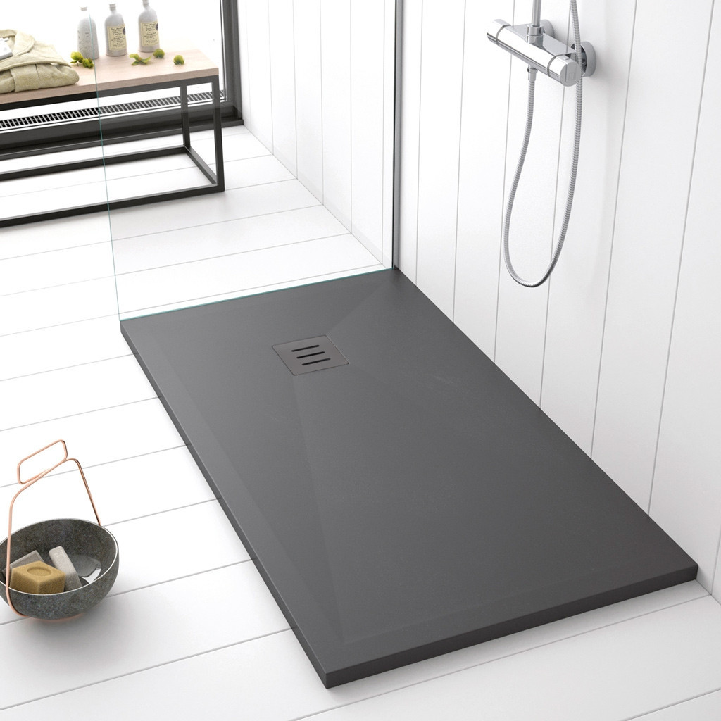Piatto Doccia Antracite, realizzato in polvere di marmo, carbonato di calcio, quarzo e resina.