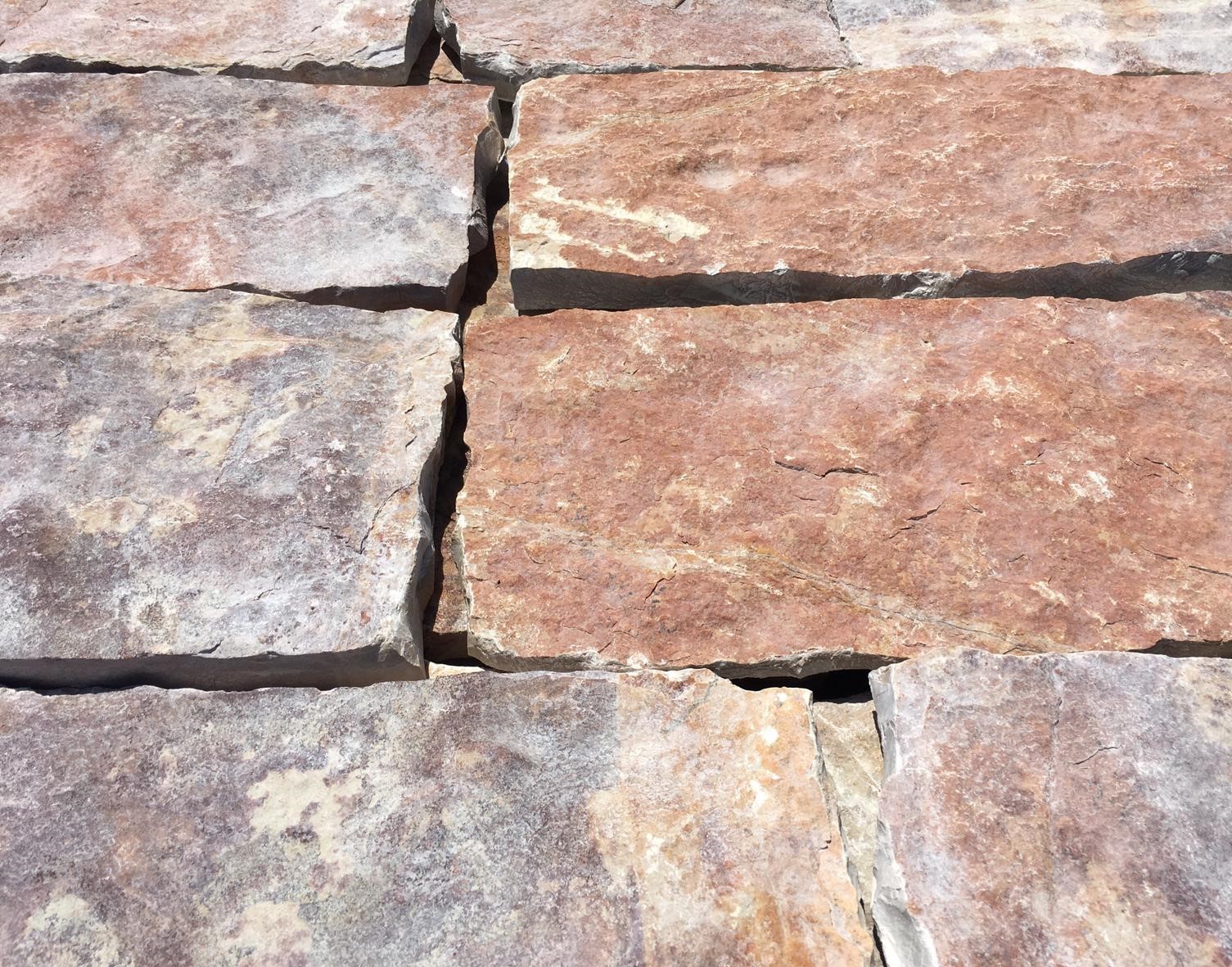 Pietra di Trani da rivestimento e pavimento pedonale squadrata segata, spessore 2 cm, disponibile nel colore rosso tipico.
