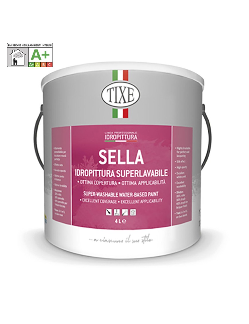 Idropittura superlavabile da interno, caratterizzata da elevatissima copertura e punto di bianco, con un effetto seta tale da essere elemento di decoro ove si voglia raggiungere ambienti di prestigio ed eleganza. La natura vinilica del prodotto, conferisce elevatissima applicabilità e quindi dilatazione. Sella è un'idropittura altamente pennellabile, indicata per raggiungere laccature murali perfette, unite da alto potere coprente. L'elevata opacità della pellicola conferisce potere mascherante e antiriflesso, accompagnando una superlativa lavabilità necessaria in ambienti destinati ad un facile sporcamento.