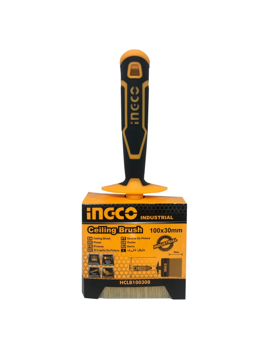 Plafoncino con setola bionda da 100 x 30 mm Ingco HCLB100308 dotato di pratico manico soft touch forato idoneo all'inserimento di un eventuale bastone.