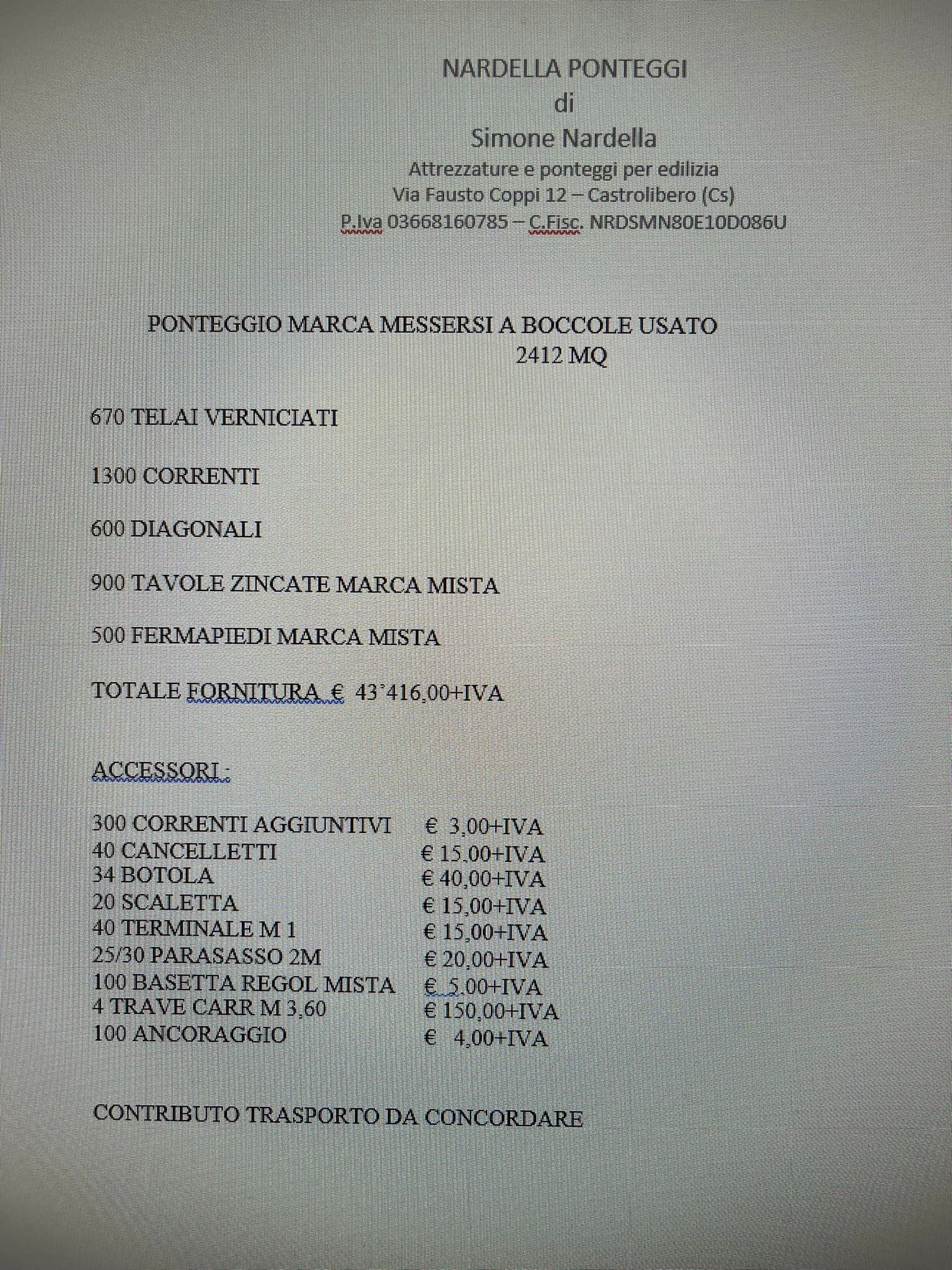 2400 mq ponteggio Messersi a Boccole completo
