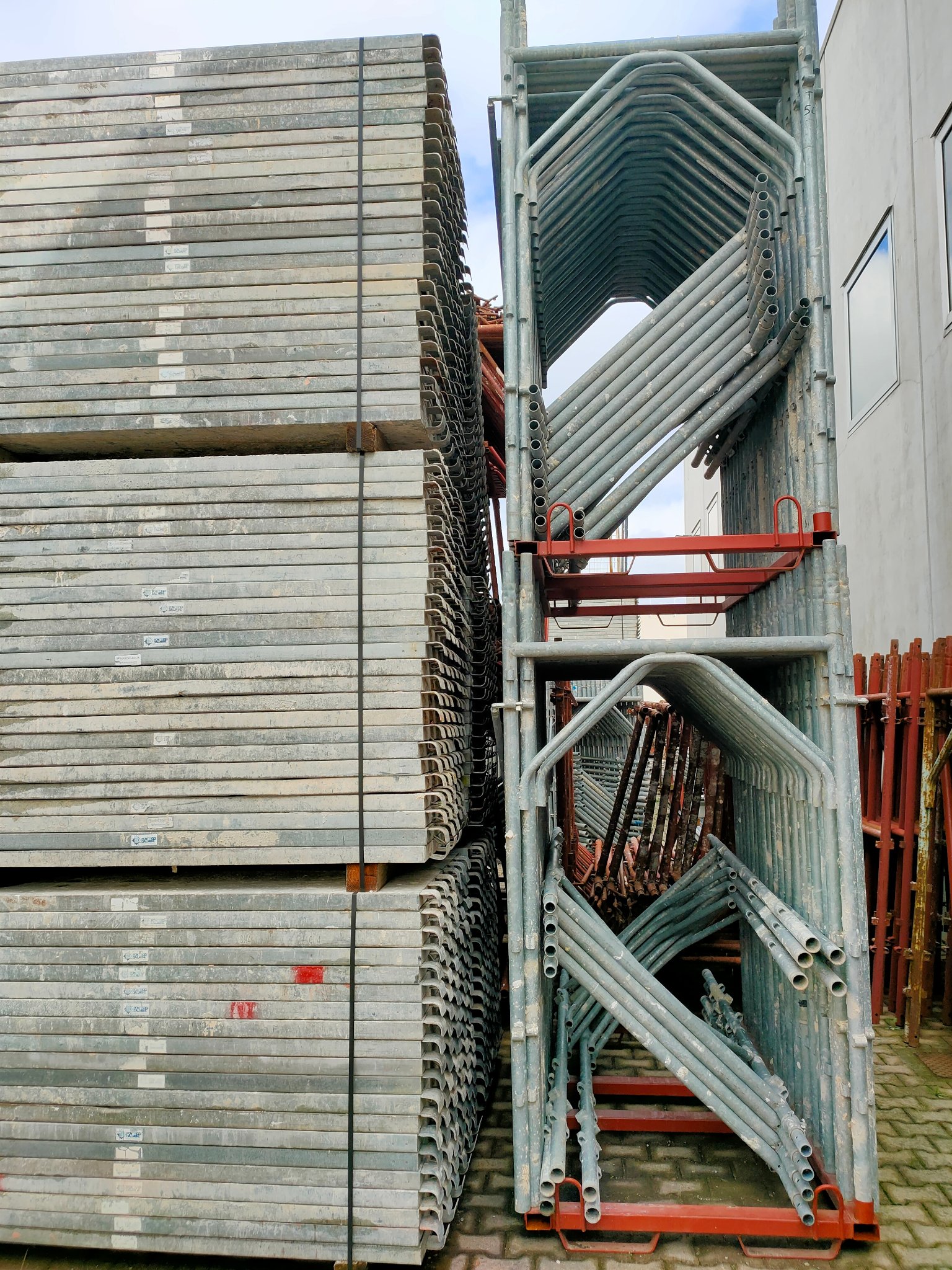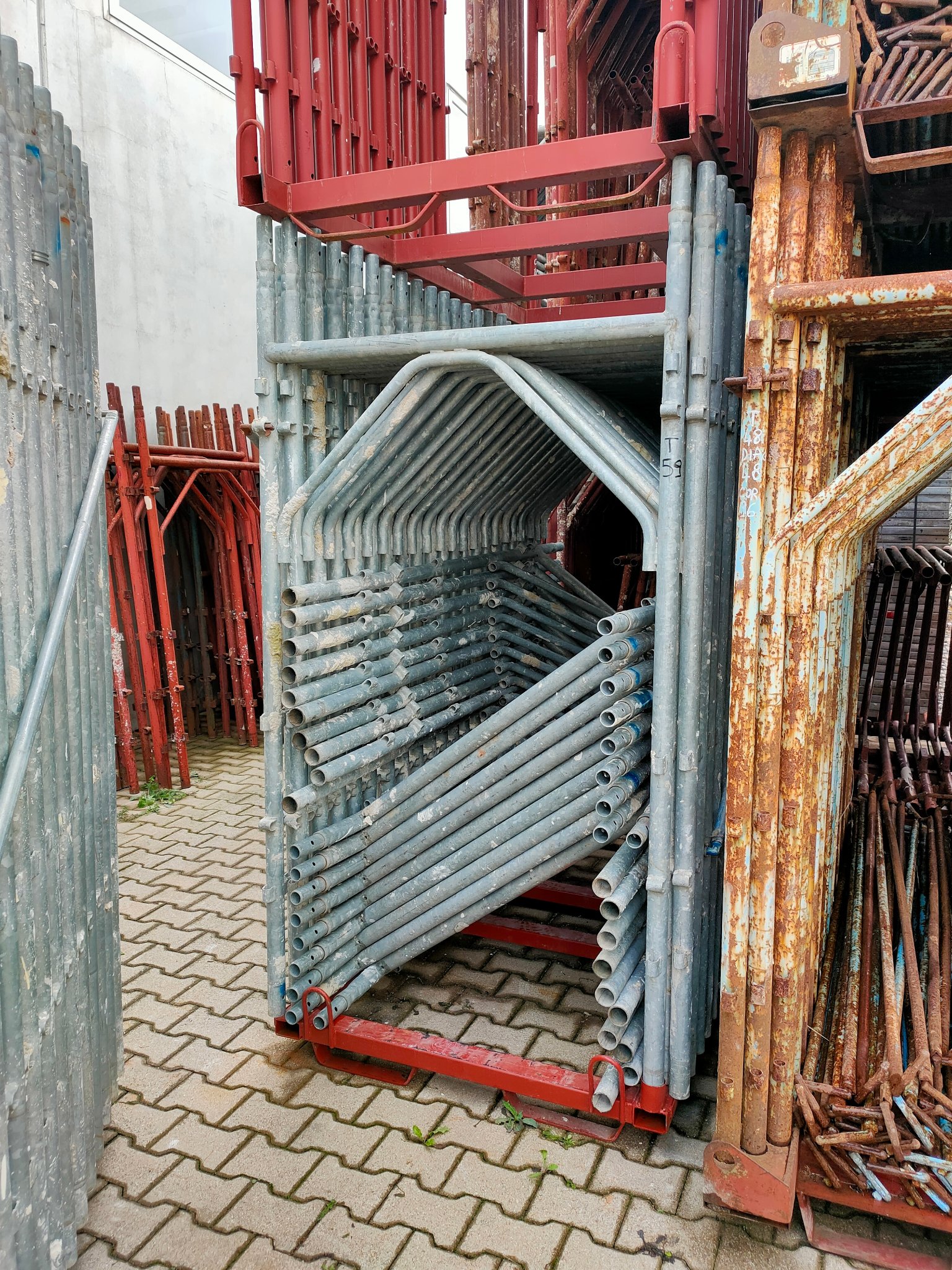 Mq. 780 ponteggio MS a boccole zincato in ottime condizioni completo di diagonali - correnti - pedane - botole -scale- cancelletti e fermapiedi tutto marchiato MS al prezzo di € 25/mq. con libretto. Contenitori a parte. Siamo a Morgano di Treviso. Contatto Vanni.