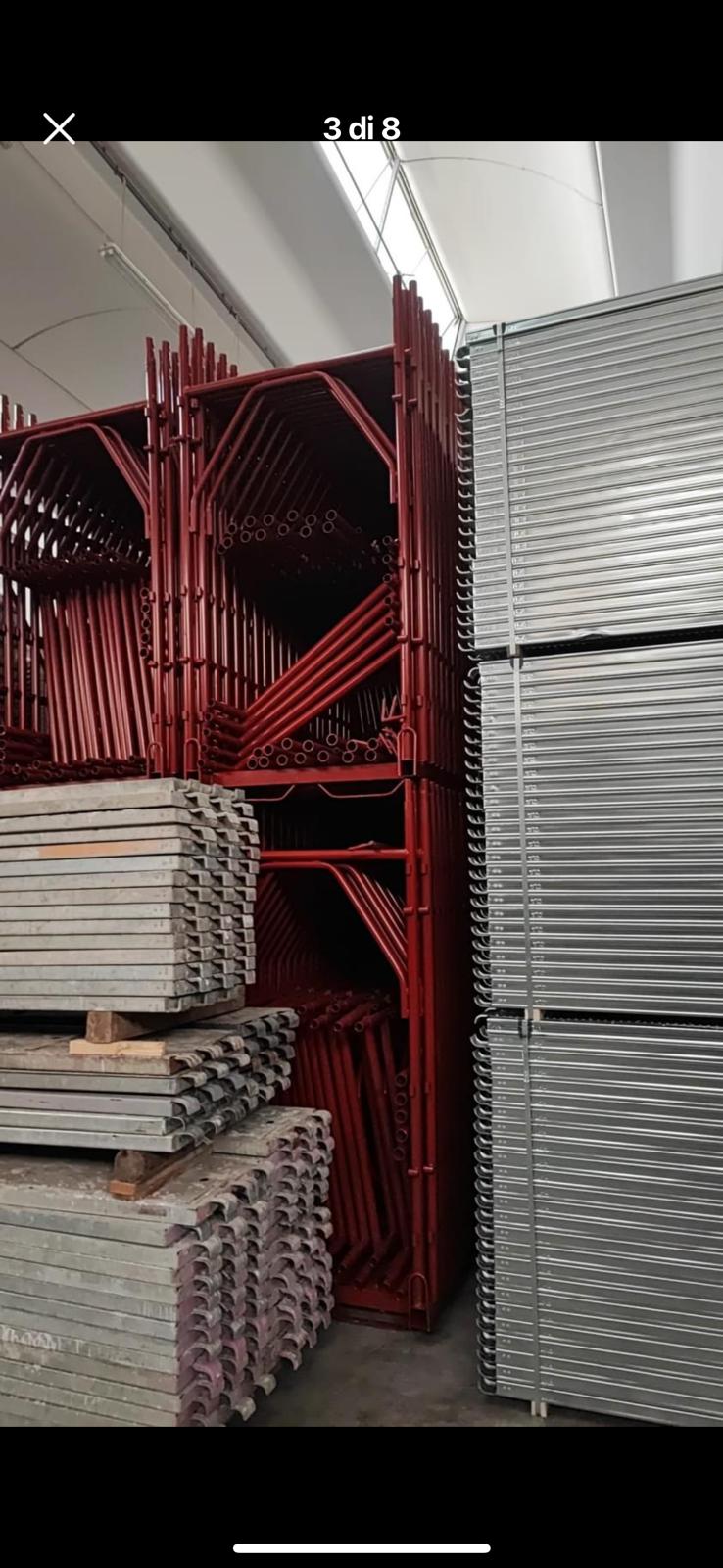 Nuovi prezzi ribassati per ponteggio a boccole verniciato nuovo FM1 completo di telaio,corrente,diagonale,fermapiede,pedane in CL4,botole,scale,cancelletti,basette e contenitori. Prezzo al mq 31€ vendita a mq pezzi singoli. Contatto 3336334741.