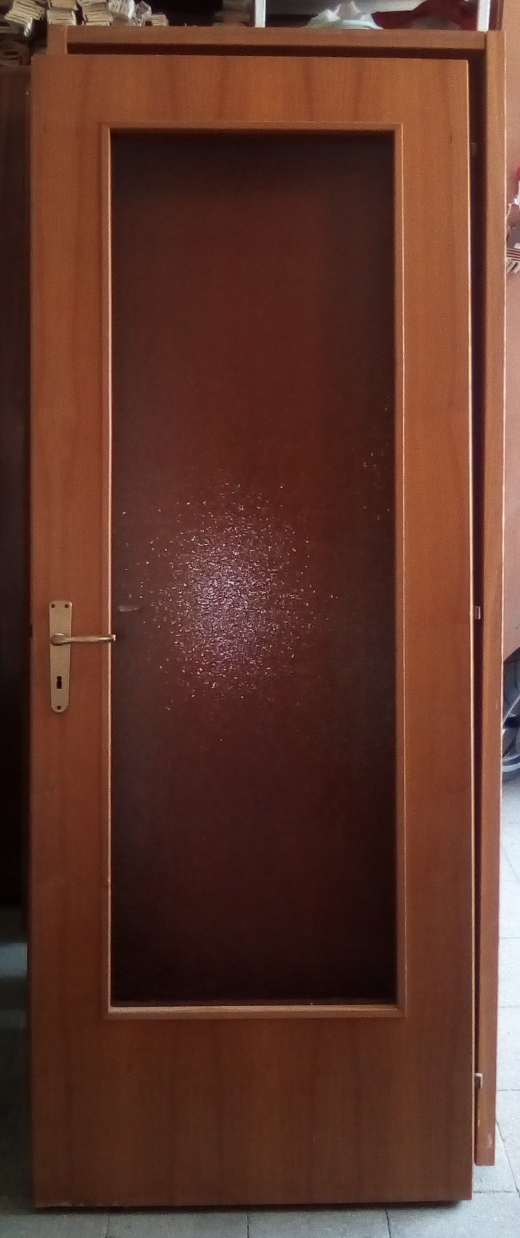 PORTA A BATTENTE SPING.DX 87x213 TEL.11 CON VETRO MARTELLATO BRONZO INCLUSO.