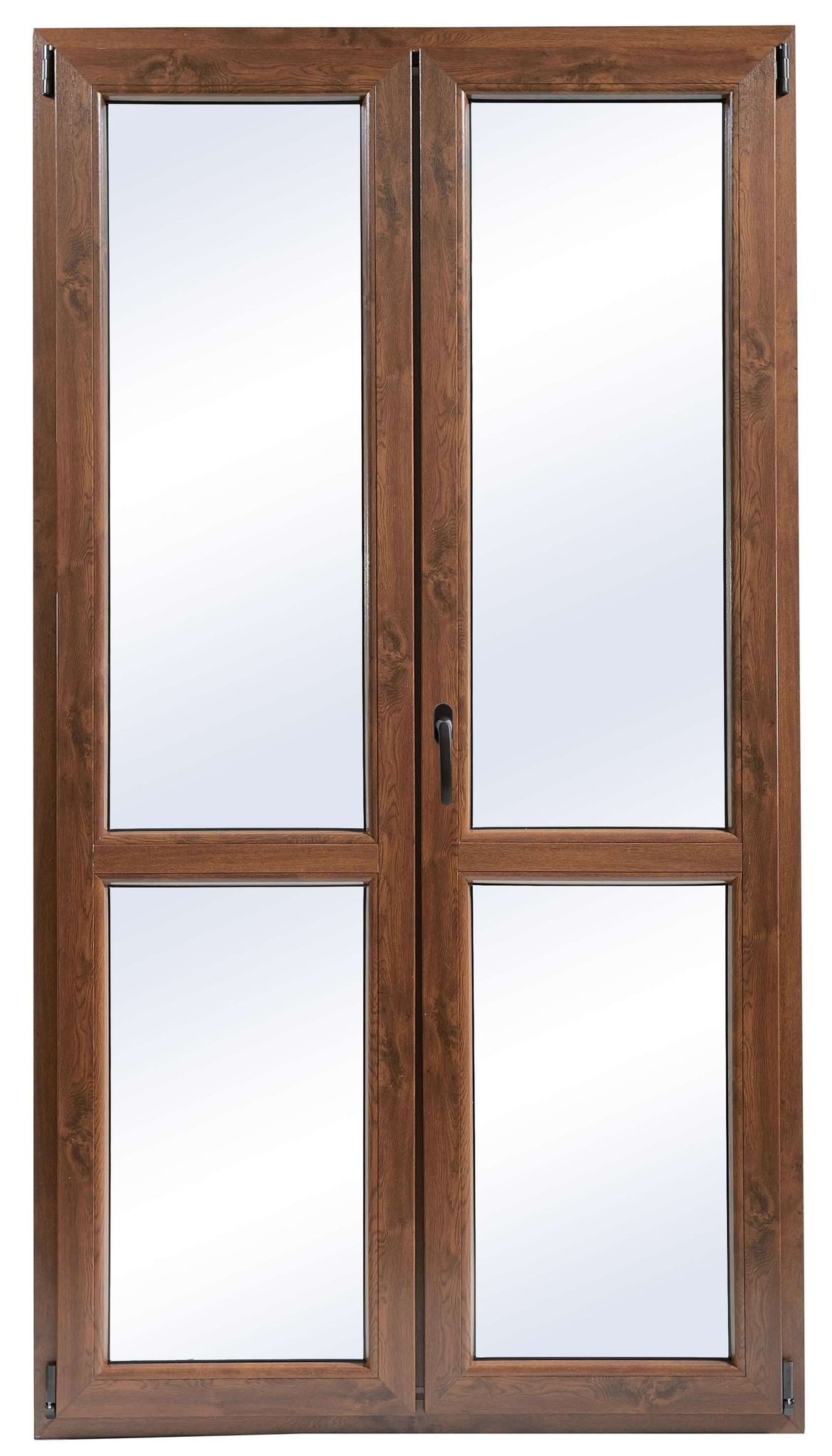 Misure 120x220. Descrizione prodotto: La porta finestra in PVC Noce Nazionale 2 ante ha un'altezza di 220 cm per una larghezza di 120 cm. L'apertura è oscillo battente. Sia il telaio dell'anta (sezione 80x77mm) che il telaio della cassa (sezione 70x66mm) sono composte da 5 camere,con anima in acciaio 1,2 mm. Il coefficiente termico del telaio è =1,40 Wm/K e quello del vetro è =1,10 Wm/K. L'abbattimento acustico del prodotto ha un valore di 33 dB (-1;-5) e la trasmittanza termica U=1,27 W/Mk. La permeabilità all'aria è di classe 3,la tenuta all'acqua è 5A e la resistenza al carico di vento C1.