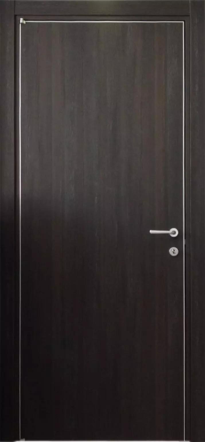 Porta in laminato mod. Glamour liscia con profilo acciaio e cerniere a scomparsa colore Larice Caffè