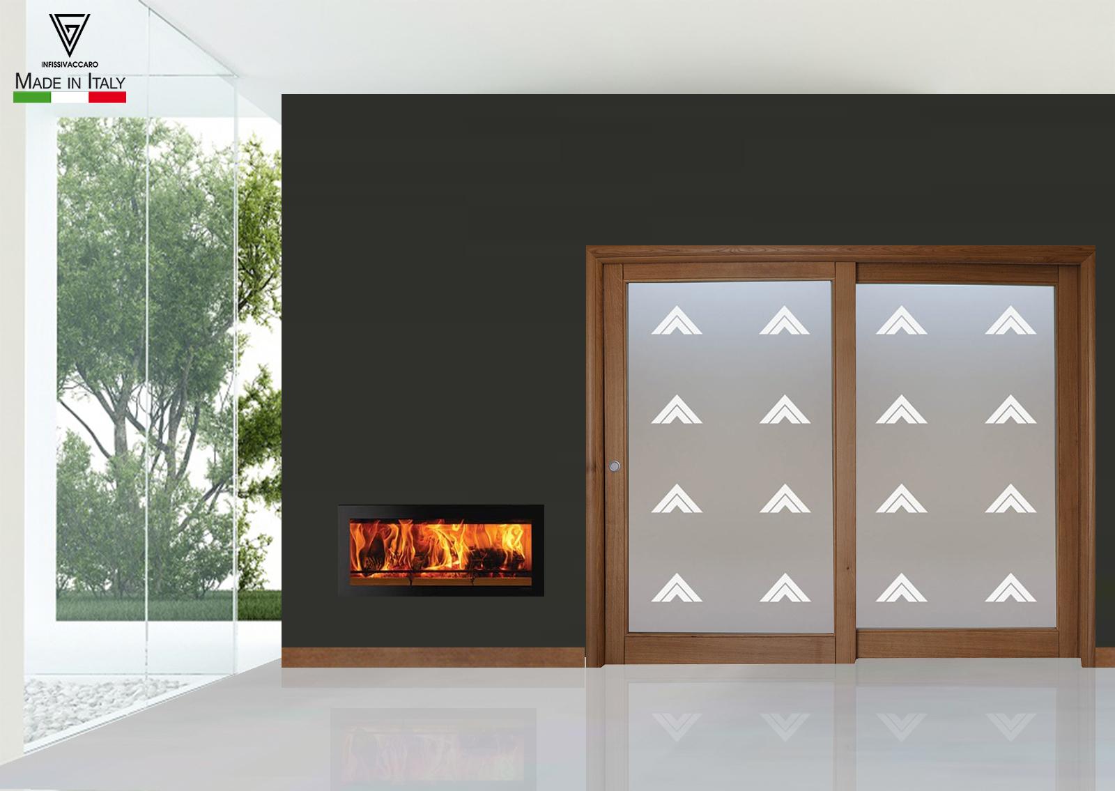 Tipologia: Porta in legno massello scorrevole in parallelo a tirare con vano vetro (scluso)