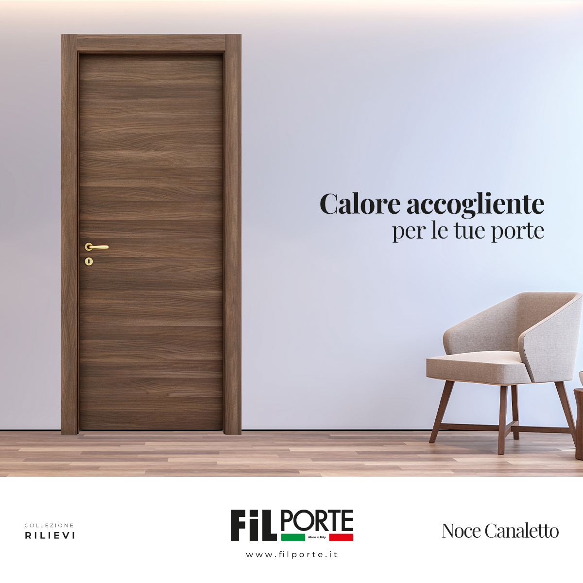 Il modello Noce Canaletto della collezione Rilievi รจ perfetto per donare immediata eleganza grazie alle sue venature legnose e al colore caldo e versatile.