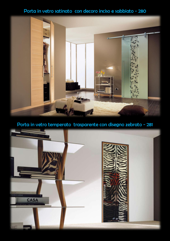 Porte a vetro scorrevoli Battenti . Decoro inciso e sabbiato BELLINVETRO.