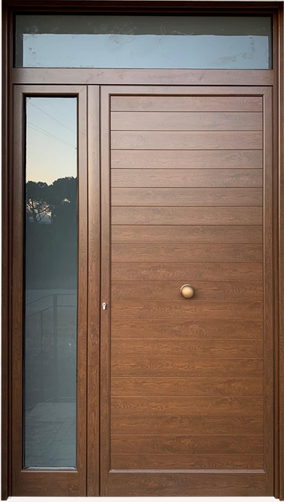 Portone in alluminio 1 anta e mezza con sopraluce.
